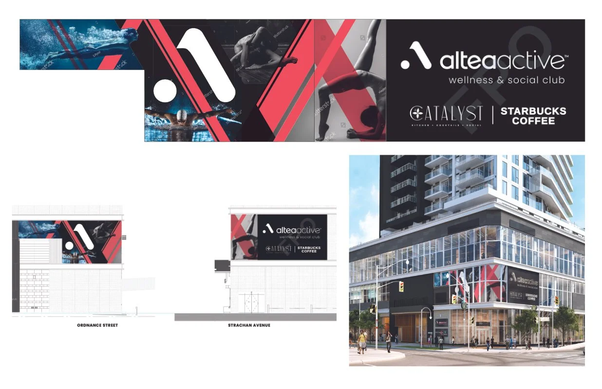 I was brought on to extend Altea’s refreshed brand language to the exterior of their new location. Working closely with Third Eye Insights and the Altea team, I developed multiple design directions before refining the final approach. The visual language was then carried through into Altea’s pop-up sales space, creating a cohesive experience across exterior advertising and on-site engagement.